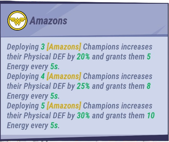 Queen Hippolyta is the first new Amazons tagged champion to come to the game, and her kit is built around defensive support through granting shields to her teammates and absorbing damage taken by them. Her ultimate is a channeled ability, but it grants her Super Armor, meaning she cannot be interrupted during the cast. We expect her to be used primarily with Amazons once the rest of that team is formed, but she is also one of the more plug-and-play champions we've seen in quite a while. Some have dubbed her Doctor Fate 2.0 and I think that's an apt comparison. I think all rosters should try to incorporate her into their farming plans because she is quite good even at blue stars without her unique legacy piece, but if you want to use her in high-level Meta Brawl or 3v3, you'll need to get her to Yellow 5 with a White 5 unique legacy piece, or Red 5, if you want her to instantly use her ultimate at the start of battle.